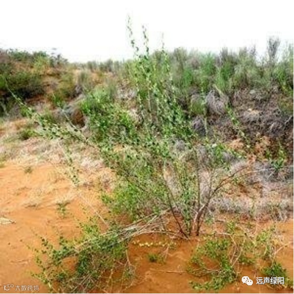 远声绿阳木蓼(学名:Atraphaxis frutescens (L.) Ewersm.)是蓼科、木蓼属灌木。分布于中国甘肃、青海、宁夏、内蒙古及新疆;俄罗斯、哈萨克斯坦及蒙古也有分布。生长在海拔500-3000米的砾石坡地、戈壁滩、山谷灌丛、干涸河道、干旱草原、沙丘及田边。木蓼具有抗风蚀、耐沙埋、耐贫瘠的优良特性,其根系发达,吸水能力强,在沙埋条件下能萌发大量不定根,形成密集的根系网,具有很好的固沙作用。同时也是优良的饲用植物。