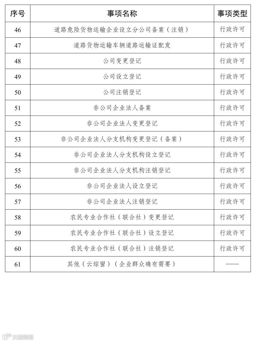 青白江区“云窗口”全域通办服务事项清单