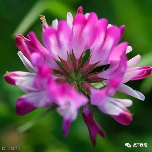 二年生草本植物,匍匐多分枝,高可达30厘米,奇数羽状复叶,叶柄较叶轴短。托叶离生,小叶倒卵形或椭圆形,先端钝圆或微凹,基部宽楔形,上面近无毛,下面散生白色柔毛,总状花序,有花呈伞形;总花梗腋生,苞片三角状卵形,花梗短;花萼钟状,萼齿披针形,花冠紫红色或橙黄色,旗瓣倒卵形,瓣片长圆形,荚果线状长圆形,种子肾形,栗褐色,2-6月开花,3-7月结果。