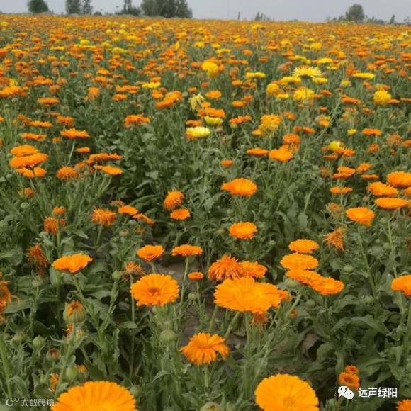 金盏菊(学名:Calendula officinalisL.)别名:金盏菊、盏盏菊、黄金盏、长生菊、醒酒花。菊科金盏菊属两年生草本,原产欧洲西部、地中海沿岸、北非和西亚,现世界各地都有栽培。耐瘠薄、耐干旱、较耐寒、适应性较强,能耐-9℃低温,怕炎。不择土壤,以疏松、肥沃、微酸性土壤最好,能自播,生长快。在阳光充足及肥沃地带生长良好。常用于花坛摆花。