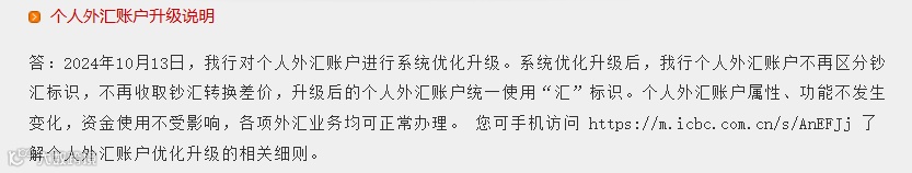公告称,“服务升级后,客户在农业银行持有的个人外汇账户属性、功能不发生变化,原来通过现汇账户、现钞账户办理的各类业务均可正常办理。”