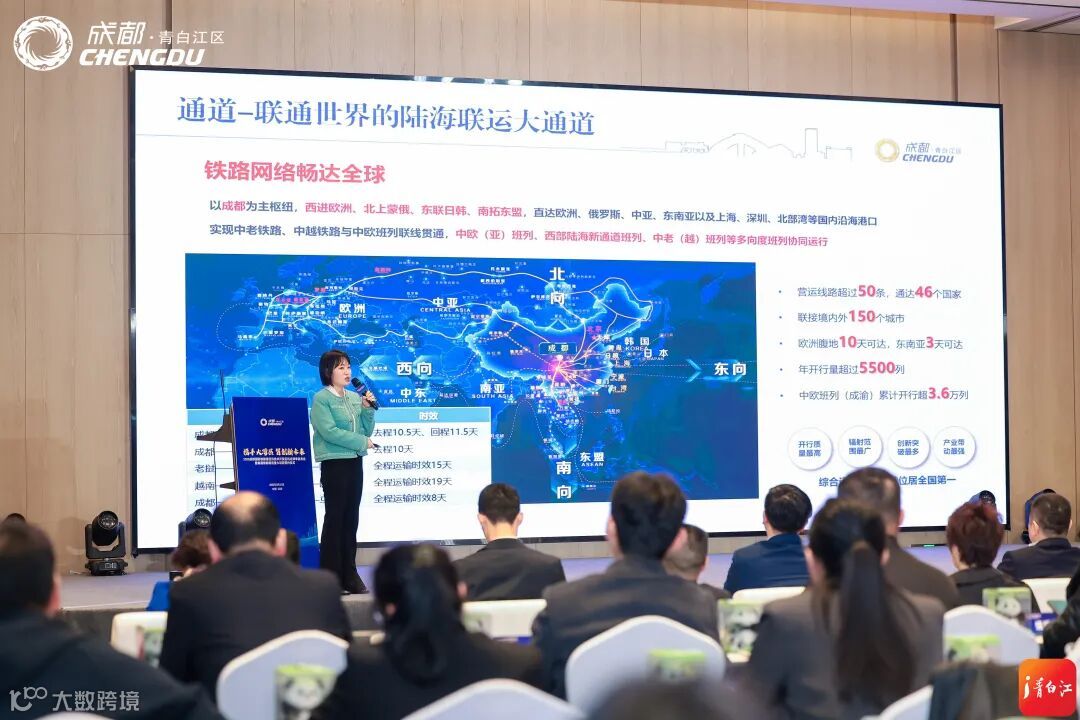 本次活动围绕“通道、开放、产业、环境”,发布了蓉欧速达班列、“澜湄蓉(欧)”快线等班列精品线路9条,同时发布了投资项目10个、投资载体近200万平方米,覆盖了现代商贸物流、新材料、新能源、装备制造、商业航天等领域重大产业化项目投资机会。
