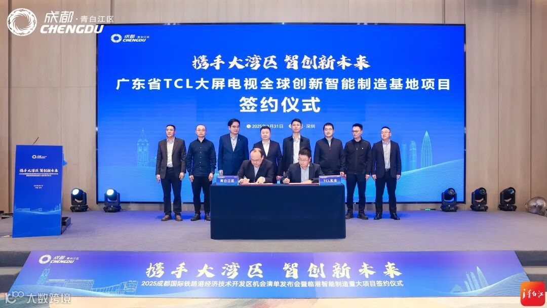 活动现场,青白江区与TCL王牌电器(惠州)有限公司签署了《广东省TCL大屏电视全球创新智能制造基地项目合作协议》。