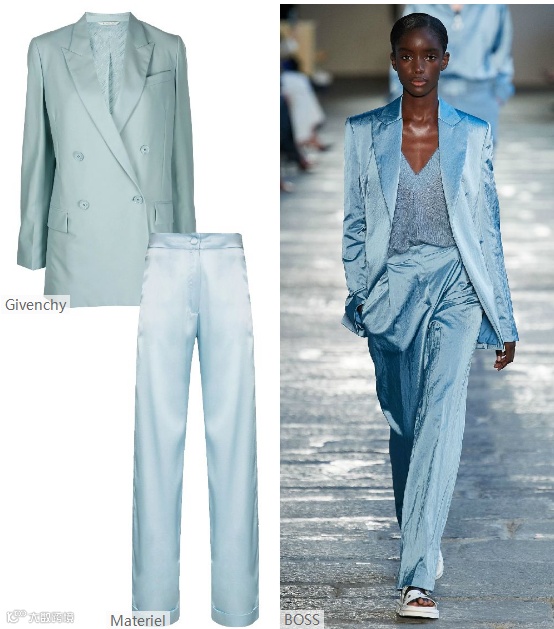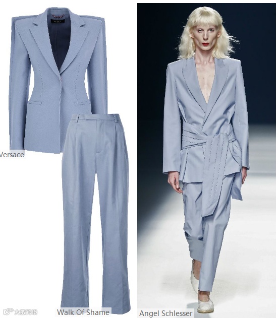 2022春夏女装西装套装,关注点从合身便西版型转移到更宽松休闲的版型,进一步向日常舒适发展。跨季性和持久性成为2022春夏女装套装面料重点趋势之一。