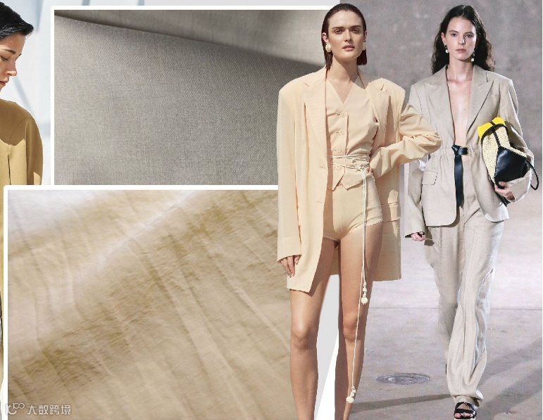 精致低调的中间色调和黄油中性色彰显了经典魅力,诠释了2022春夏女装西服套装面料的质朴、优雅、舒适。