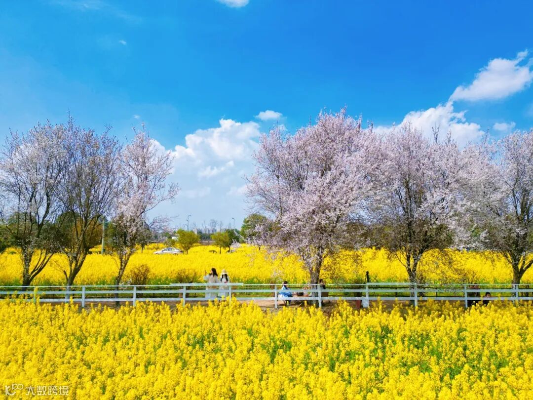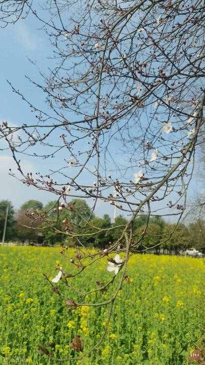 当时,一树树朦胧的繁花与周围成片的油菜花相互衬托,一夜爆“火”,成为广大网友和摄影师们的宝藏拍摄地。