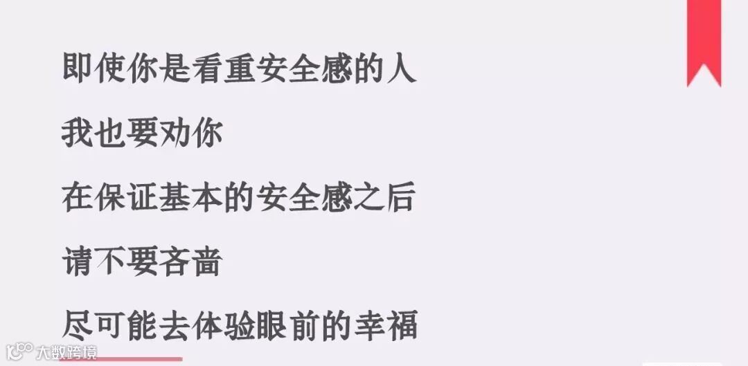 那么我也要劝你,在保证基本的安全感之后,请不要吝啬,尽可能去体验眼前的幸福。