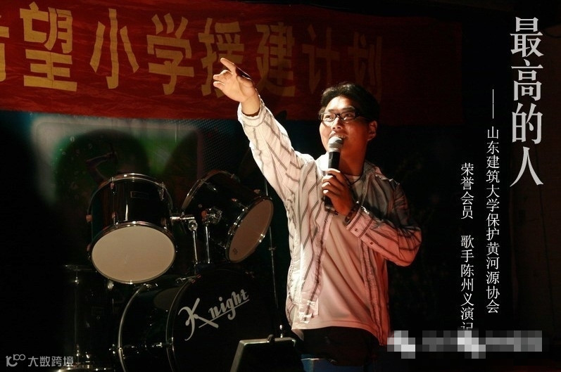 这张图片是2008年他在山东建筑大学为一所希望小学募捐义演的时候,一位志愿者拍下的。志愿者说,他是世界上最高大的人、汶川地震发生后,他骑着三轮车,行驶了8天8夜赶到地震灾区,为灾区义演37场,捐了自己仅有的3万5千元存款。从2003年至今,他已经为希望小学、网瘾少年、进行励志演讲、演唱100多场,捐出善款50多万元。别人问他,流浪的日子那么辛苦,你哪来那么多爱心?他说,在我要饭的日子,如果没有那么多好心人给我饭吃,我早就饿死了。
