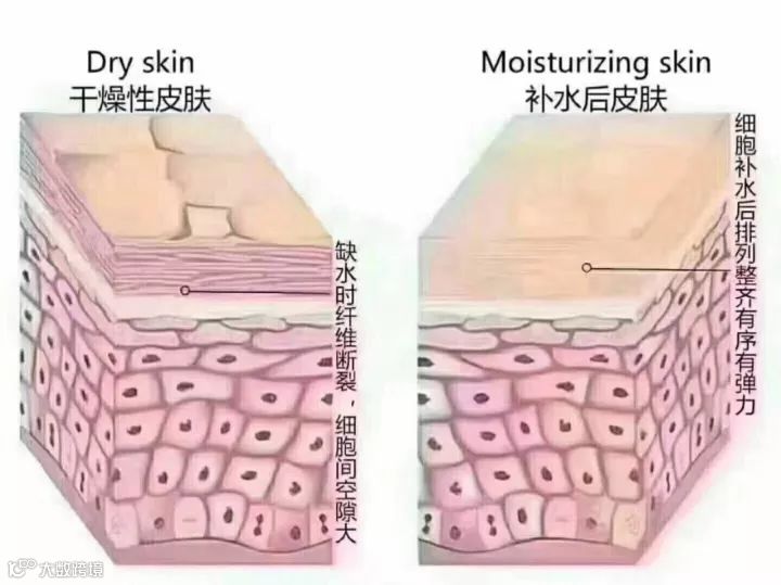 皮肤本身是一层层细胞并列组成的,并非毫无间隙,当肌肤缺水,细胞缩小,细胞间脂质流失,
