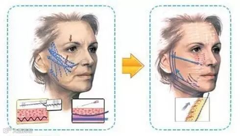 线雕提拉术是将PPDO可降解线埋入皮下各层次的组织,构成一张人工韧带网并对肌肤进行提拉、收紧,最终达到逆龄的功效。