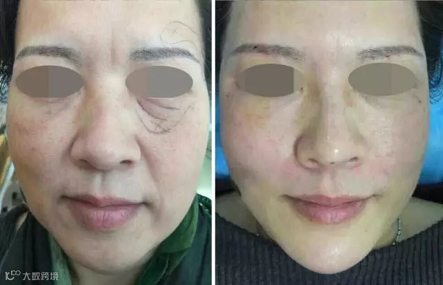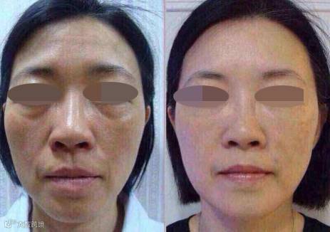 ►左边脸PK右边脸,侧脸线条清晰、小V脸立即出现、法令纹改善明显、苹果肌上提,整体呈现年轻漂亮的效果。