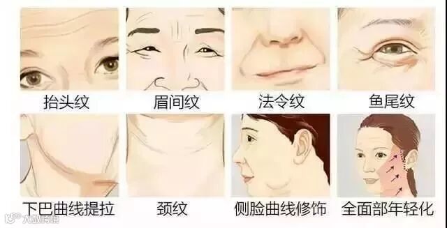 针对这类人群普遍出现的眉间纹、八字纹、颈部纹等问题,通过线雕的提升方法,用可吸收蛋白线将面部松弛的组织多层次拉紧,在皮下形成支撑力来改善这些局部的皱纹。