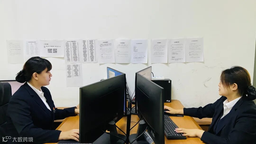 9月29日10时,数据分中心机场业务部郝玉佳、丁雪坚守在互联网信息采集岗位。摄影:黄梅