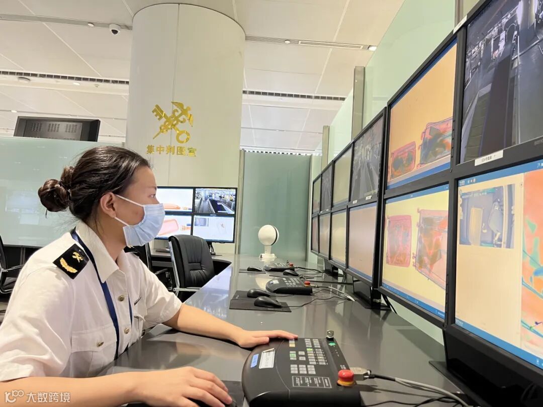 9月29日4时51分,大兴机场海关关员王楠于集中判图室开展行李判图。摄影:王思馀