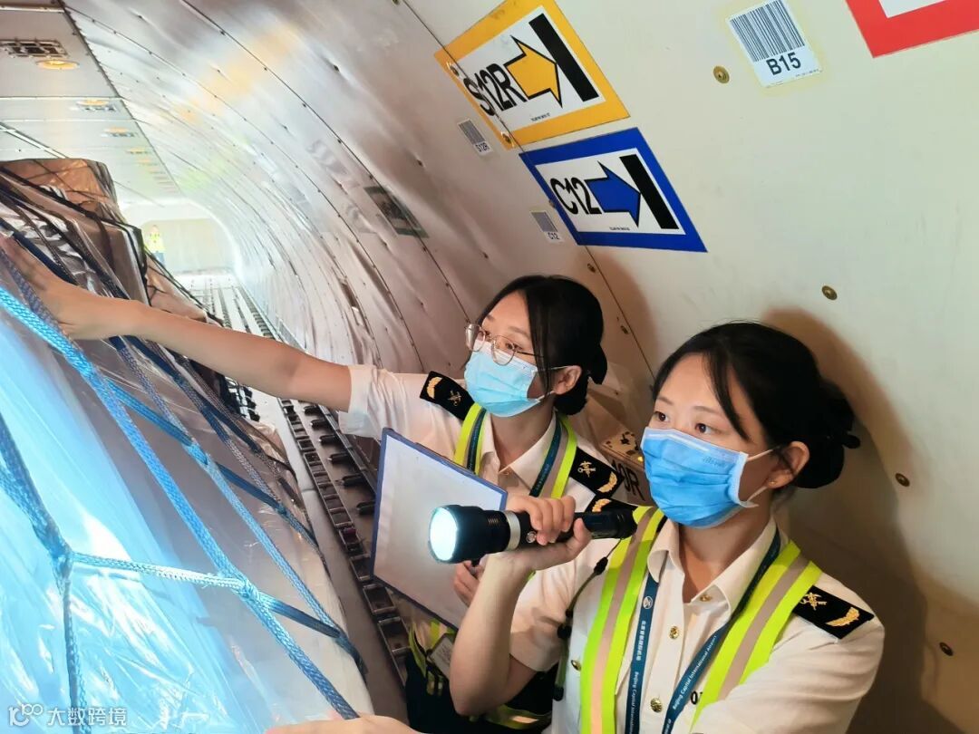 9月29日12时06分,首都机场海关关员郭思维、赵春婷于首都机场开展航班登临检查。摄影:孙桂蓬。