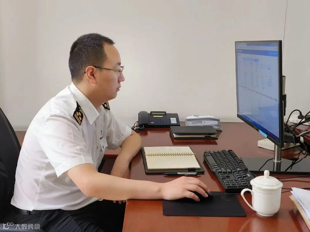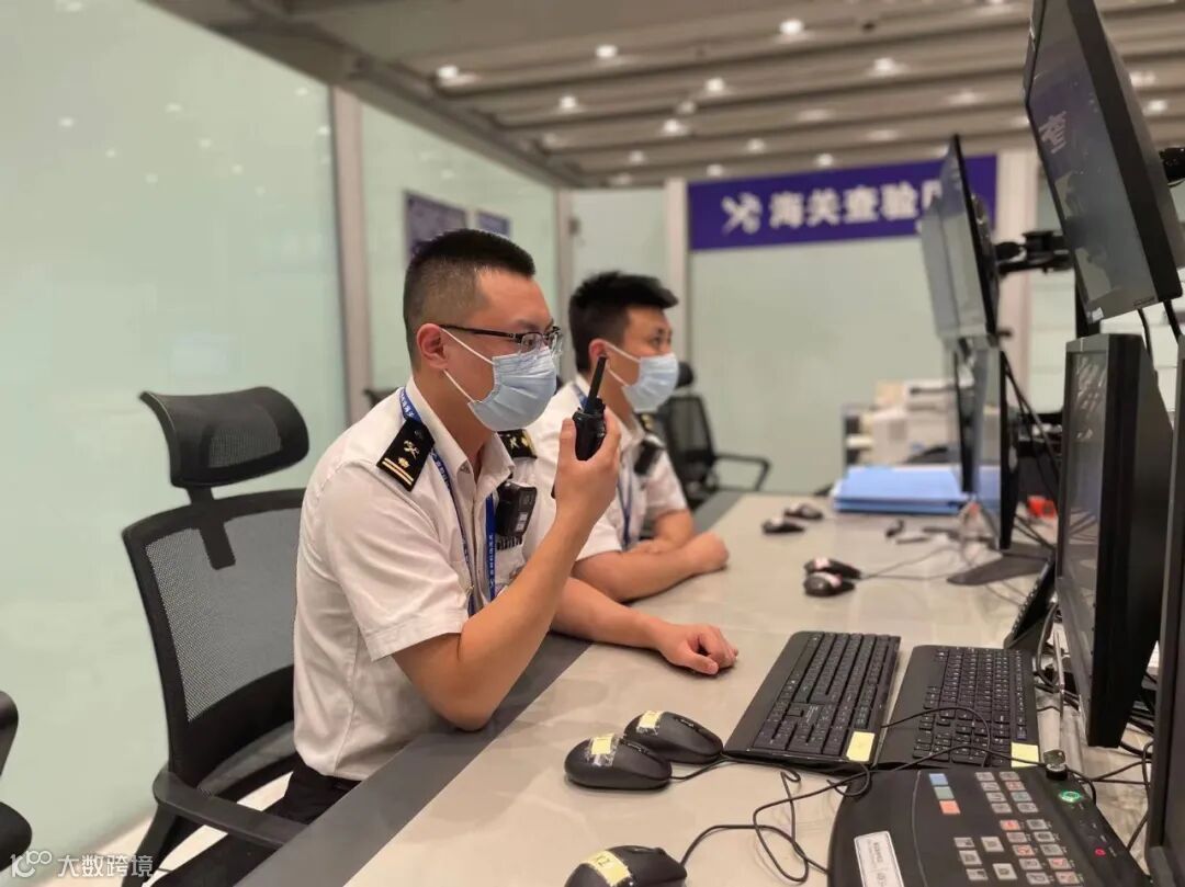 9月29日10时,朝阳海关关员王添做好通关保障工作。摄影:李明祎