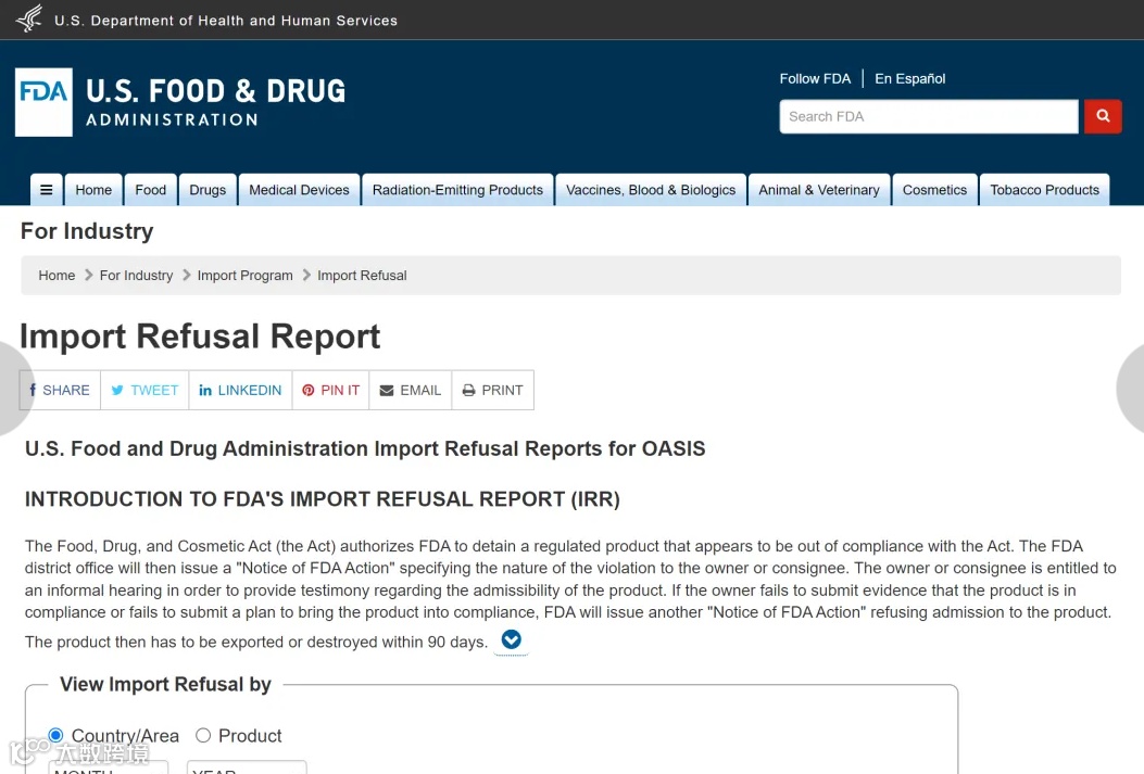 上图为FDA发布的通报信息查询网站: