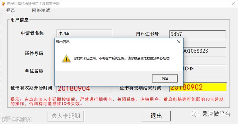 如果IC卡有效期已经过期,则不能在本系统延期,请您联系当地数据分中心处理。如下图所示: