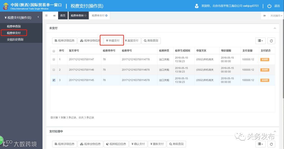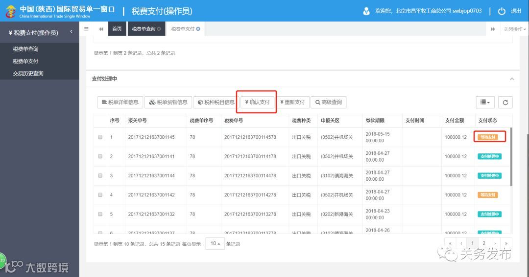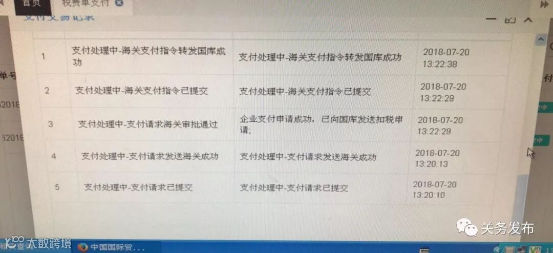 在税单支付界面查不到已经通过柜台支付的税单,通过柜台交过的税单在系统中仍然显示为未支付状态,但是无法再次支付,海关和银行会对这个单子进行控制不会允许二次支付。