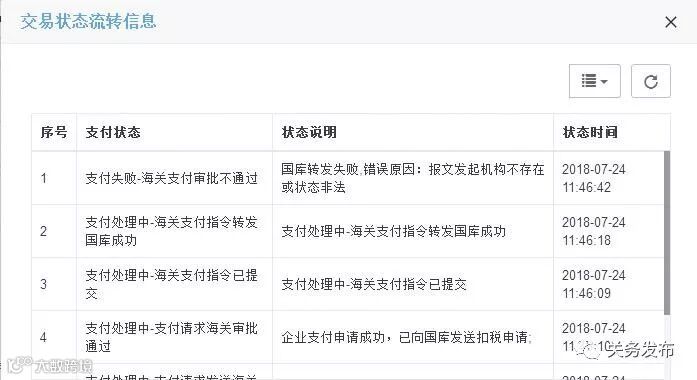 答:海关设置自动审核(同时也是允许使用新支付业务的开关),银行是人工审核。