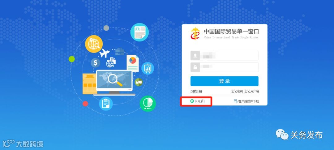 答:在登录界面输入用户名和密码登录的,均会显示“404没有访问权限”。不要输入用户名去登录!目前“单一窗口”的税费电子支付系统,仅支持使用卡介质登录,卡介质就是电子口岸IC卡或者Ikey。具体操作如下图所示:法人或操作员使用卡登陆时,点击登录框左下角的卡介质,再输入卡密码。