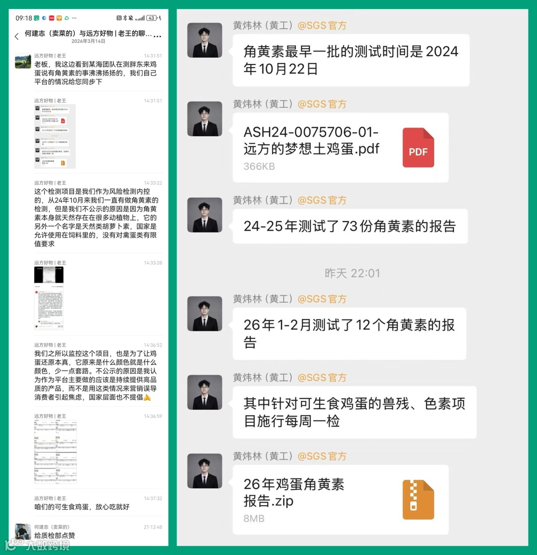 远方好物就已将鸡蛋中的角黄素纳入内部严控检测,