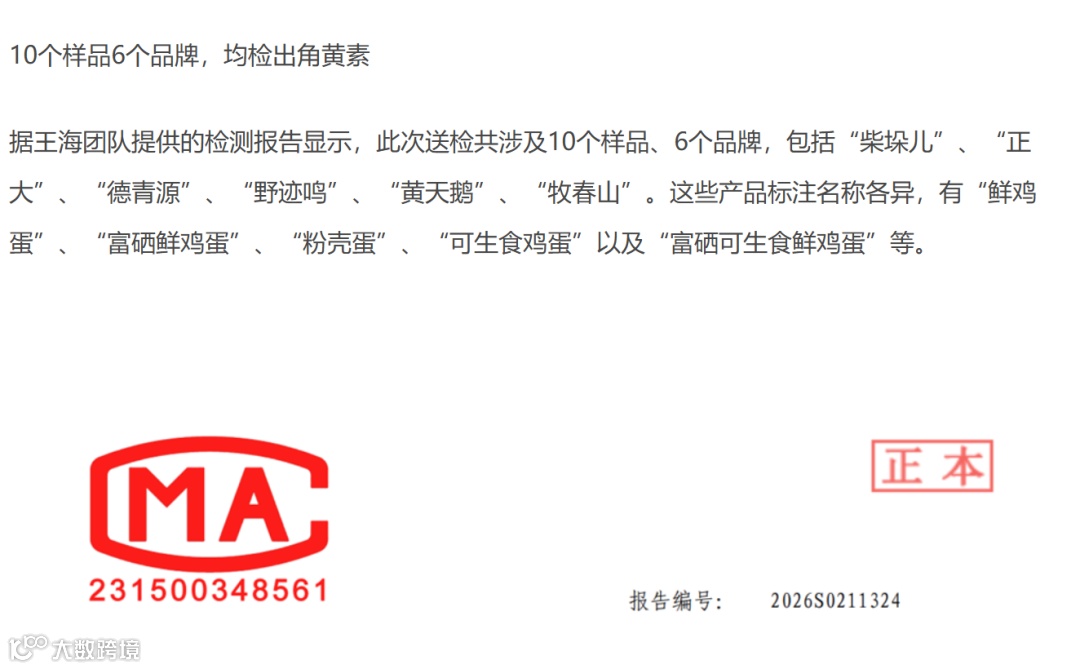 :多个知名品牌的鸡蛋被检出角黄素(斑蝥黄),其中部分产品含量接近或突破了饲料端的添加限量,引发了对 “可生食、天然无添加” 等宣传真实性的广泛质疑。 - 标准与回应