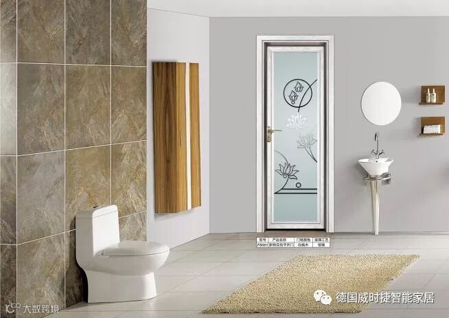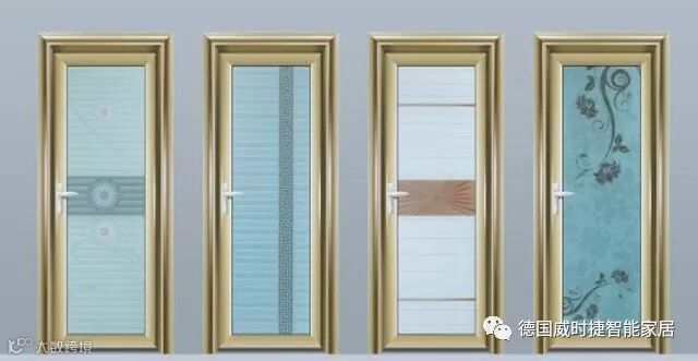 卫生间的门主要注重私密性和防水性等因素,可选择设计时尚的全磨砂处理半玻璃门型。干湿区不分开的卫生间,一般选用铝合金平开门。