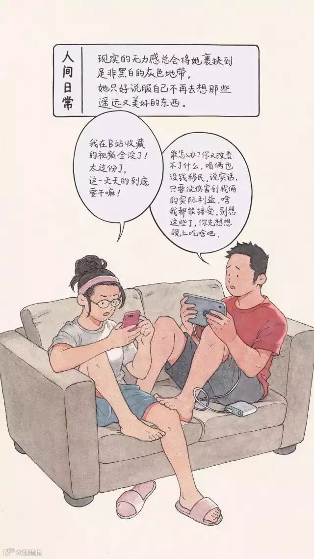 “我变得越来越不爱画笑脸,而更愿意画紧锁的眉头和一脸的沉默,大概这才是我心中真正的人间日常。”