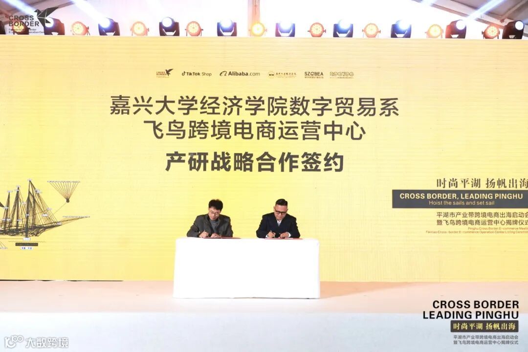 活动现场,飞鸟跨境电商运营中心与嘉兴大学经济学院、深跨协等达成了多项协议,将以平湖时尚产业带为基础,全面开启跨境电商人才、运营、孵化等方面的合作。