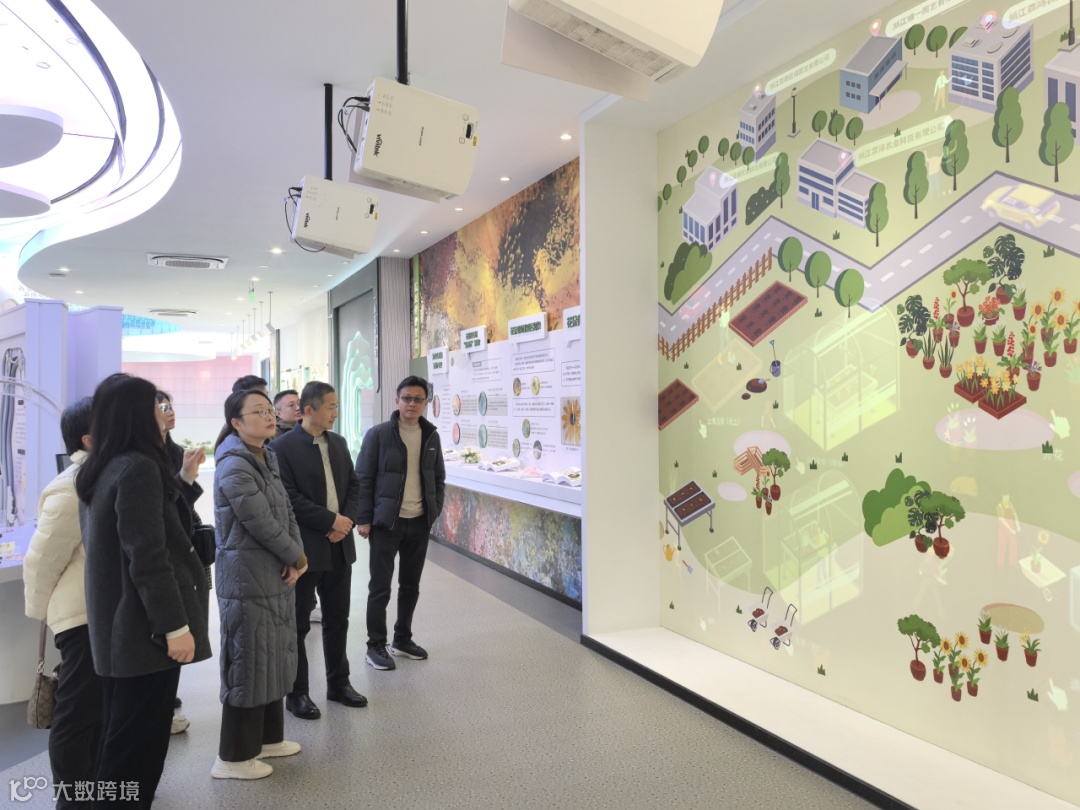 上午,调研组一行首先前往旧埭花卉电商产业园,调研“埭你共富”花卉直播“共富工坊”、雨路直播“共富工坊”,在工坊负责人的带领下,先后参观产业园内花卉科普馆、共享直播间等功能区,并召开座谈会。