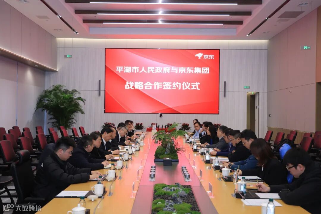 在京东总部,平湖市人民政府与京东集团战略合作签约仪式同步举行,双方就共同打造长三角京东总部基地进行洽谈。京东集团副总裁符庆明等嘉宾,市领导仲旭东、金一参加签约仪式。