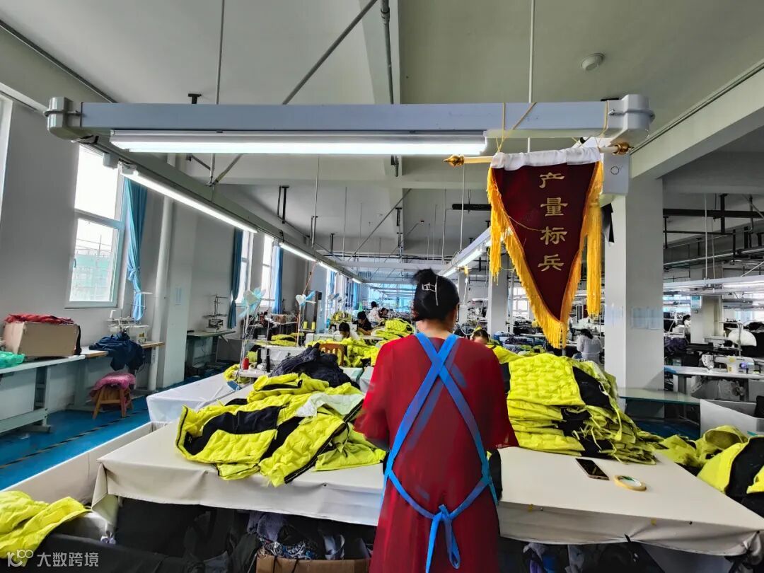 顺着生产线往深处走,面料经过裁剪、缝制,变成了棒球手套、滑雪服、户外帐篷……在成品仓库,记者看到堆积如山的户外帽衫,标签上印着“80万件”的销售数据。