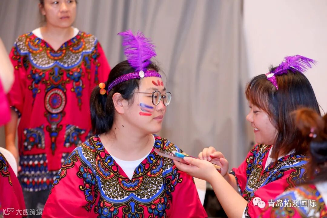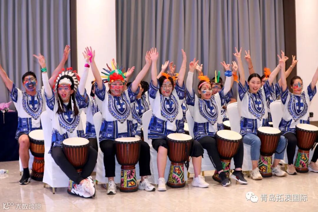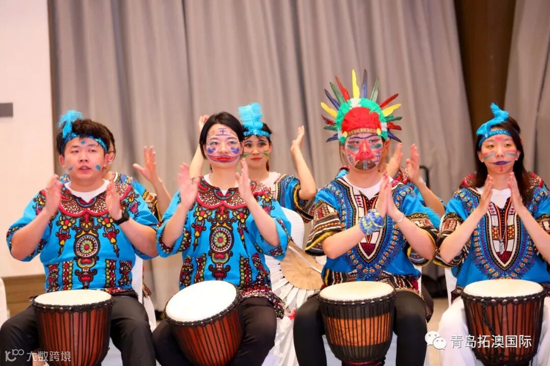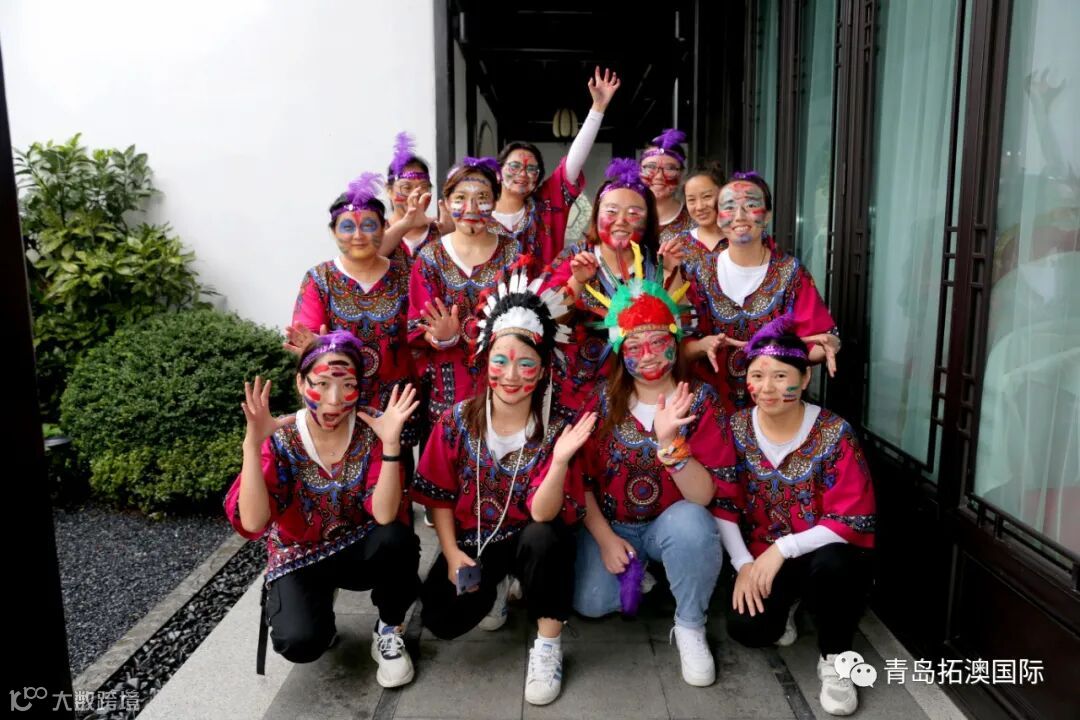 在教练的带领下,我们”蹦蹦啪啪,咿咿呀呀,吼吼哈哈,忘呼性别,忘呼年龄",非洲鼓声敲起来,面部彩绘画起来,欢呼声叫喊声音乐声,我们就是名副其实的疯狂原始人”!