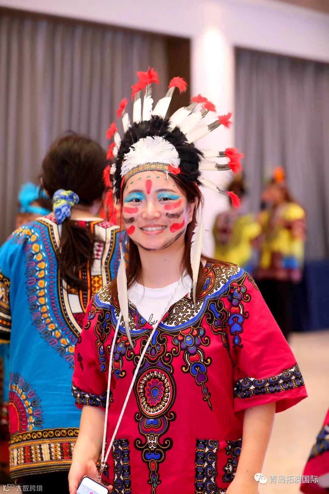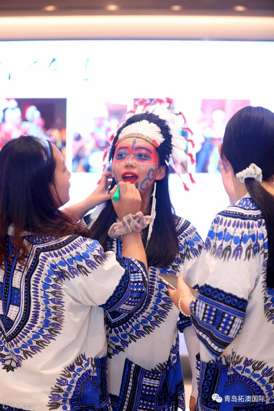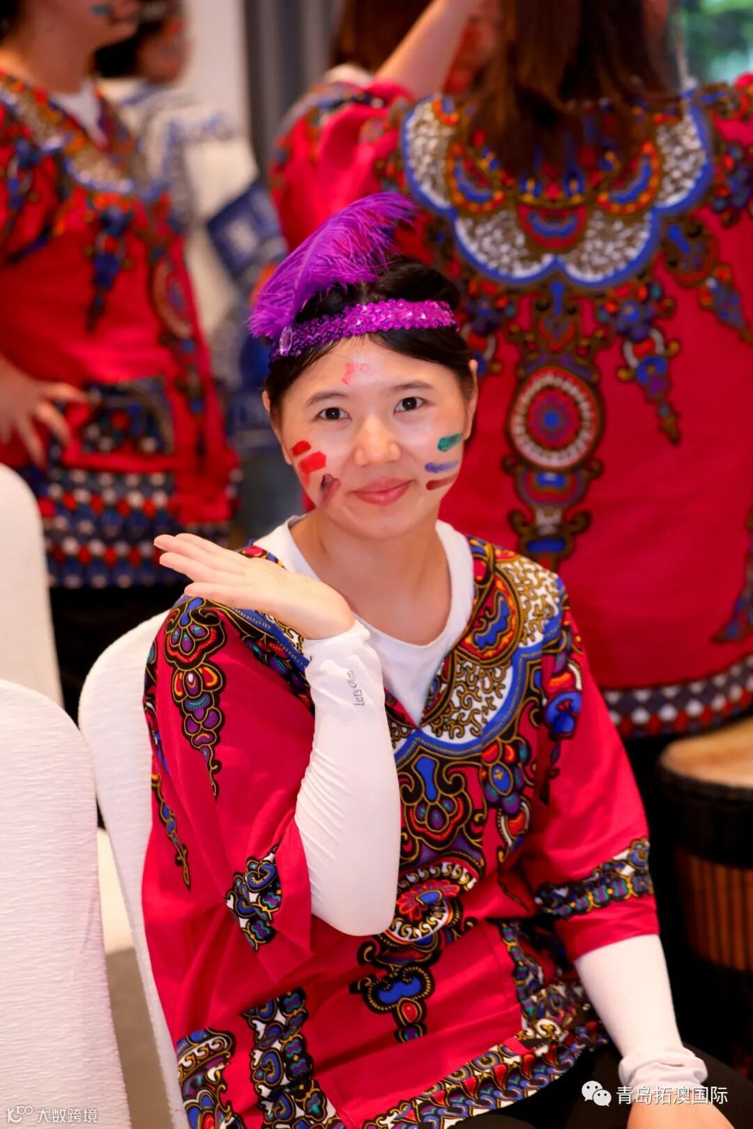 在教练的带领下,我们”蹦蹦啪啪,咿咿呀呀,吼吼哈哈,忘呼性别,忘呼年龄",非洲鼓声敲起来,面部彩绘画起来,欢呼声叫喊声音乐声,我们就是名副其实的疯狂原始人”!