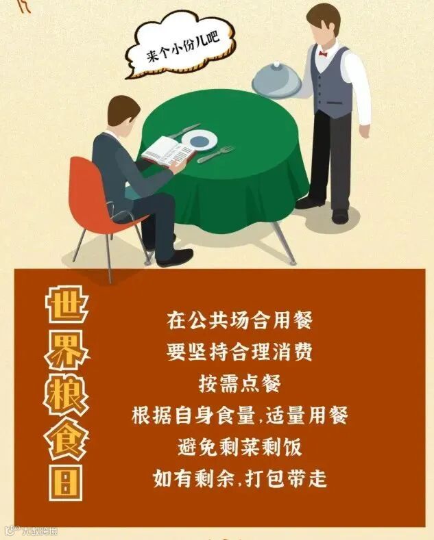 1、珍惜粮食,适量定餐,避免剩餐,减少浪费;