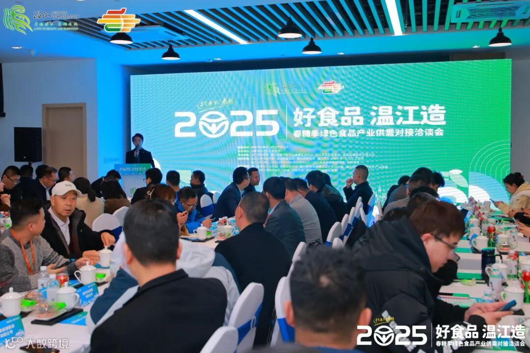 3月20日,温江区立足绿色食品产业发展优势,举办2025春糖季绿色食品产业供需对接洽谈会,以“好食品 温江造”为主题,精准邀请来蓉参加糖酒会的酒水饮品、休闲食品、商场超市、批发采购、行业协会等40余家食品产业链重点企业和机构相聚温江,面对面话机遇、手拉手谋合作,共同推动温江绿色食品产业全方位、高质量“筑巢引凤”。