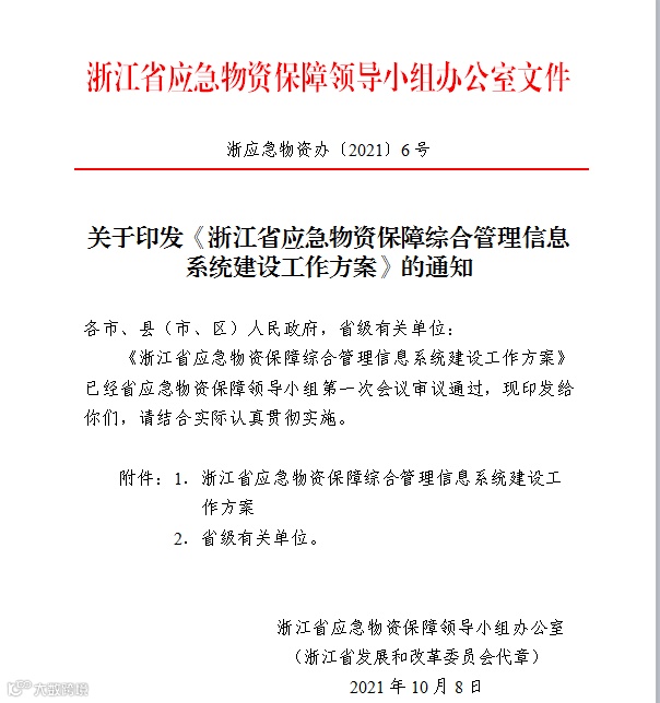 10月8日,省应急物资保障领导小组办公室发文,明确我市列为省应急物资保障信息平台建设应用试点县市,也是嘉兴地区唯一入选县市。