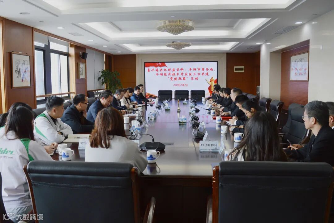 为深化工作交流互动,推动我市外贸回稳向好,形成“党建引领、资源共享、互利互惠、协调发展”的工作新格局,3月4日上午,嘉兴海关保税监管科、平湖市商务局与平湖经济技术开发区开展三方共建“党建联盟”活动。三方单位党组织主要负责人,党建、业务工作分管领导参加活动。