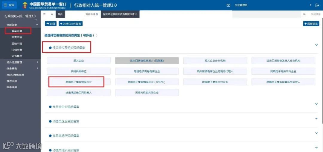 跨境电子商务物流企业、跨境电子商务物流企业(仅B2B)、跨境电子商务支付企业备案操作指南
