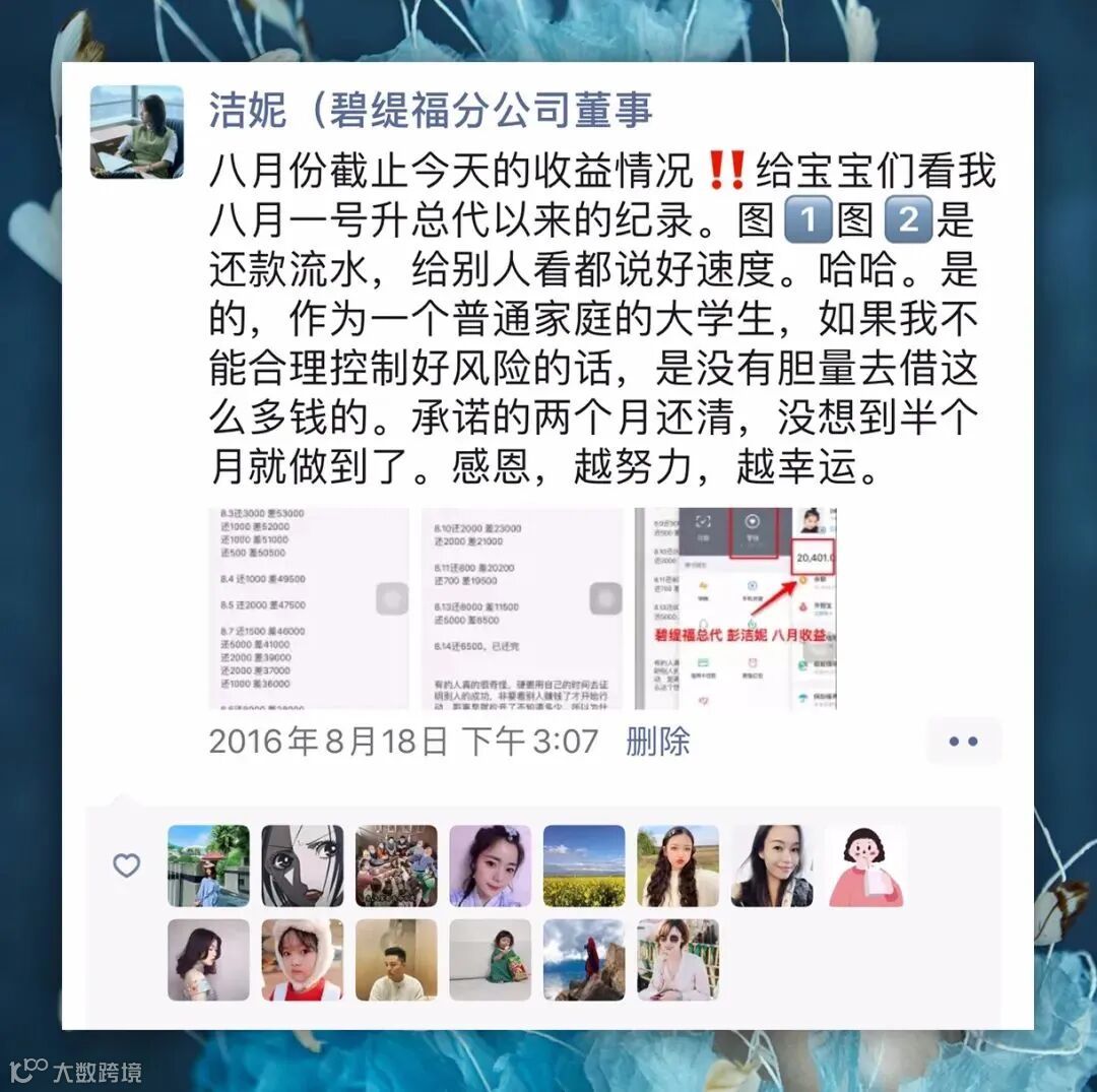 当时洁妮的身上也没什么钱,但是她非常看好这份事业,也不想让身边的人失望,于是借钱开始启动这份事业,并在半个月还清了借钱升总代的钱。