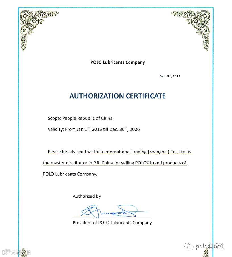POLO(浦路)润滑油在美国独立大型润滑油公司中享有极高的声誉,除了通过ISO9001:2008认证,POLO润滑油通过了美国石油学会API 认证、美国汽车工程师协会SAE认证、美国润滑脂学会NLGI认证、日本汽车标准组织JASO认证、日本润滑油协会JALOS认证。还通过欧洲汽车制造商协会ACEA认证,又是独立润滑油协会ILMA的长期重要成员。因此POLO(浦路)润滑油可以自始至终满足客户的全面服务需求。