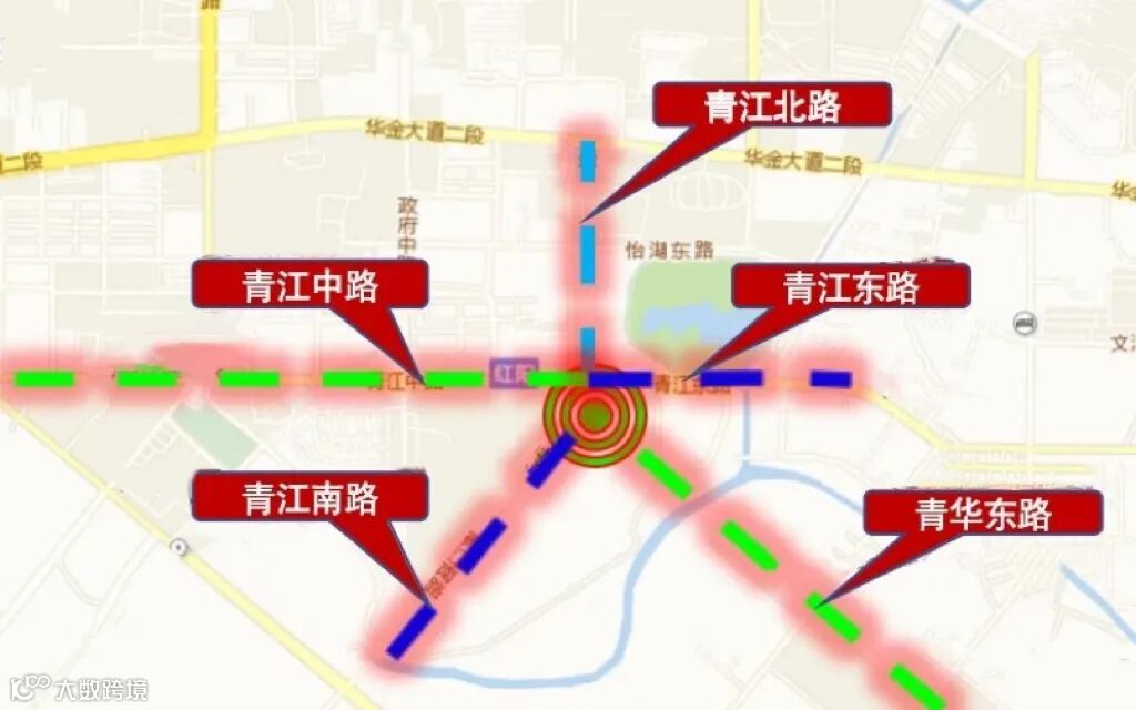 青江中路、东路、南路、北路的交汇处