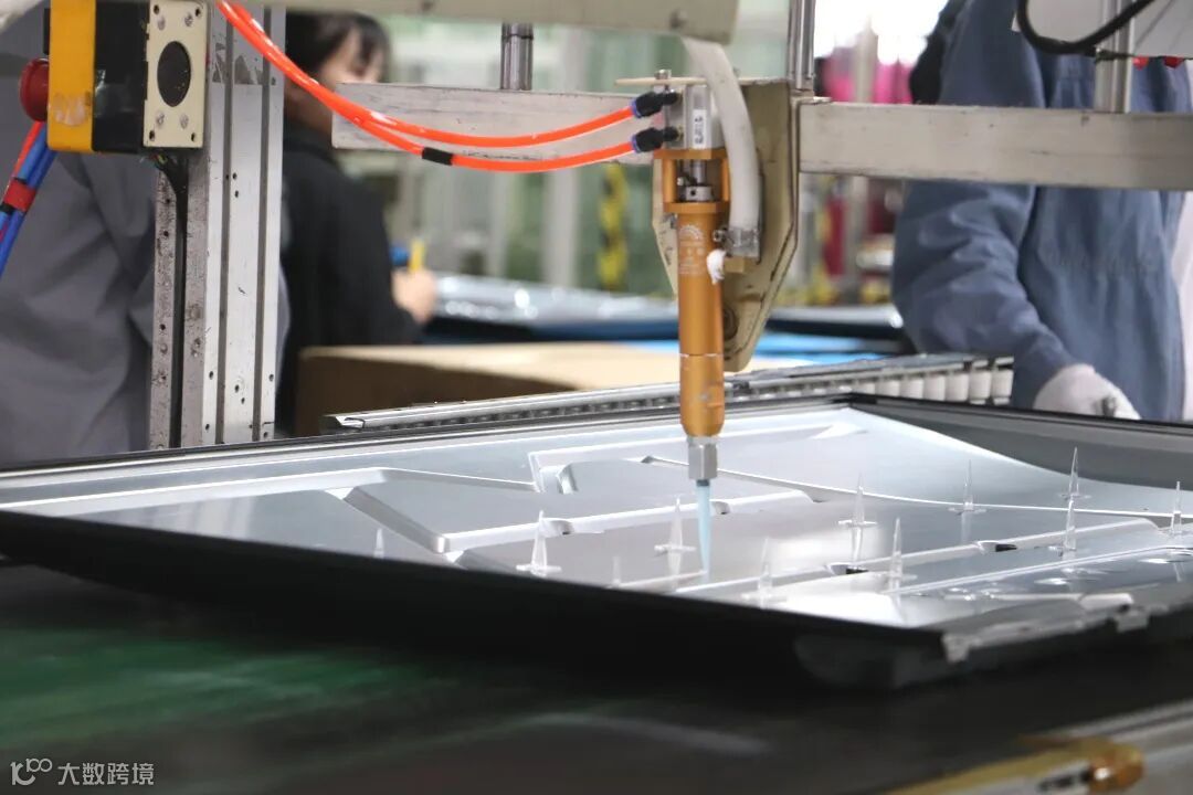 生产过程中,有一道灯条点胶环节,是电视组装的一道重要工序,通过点胶机将灯条胶点到背板特定位置上,起到黏贴、固定灯条的作用。这款自动点胶机由公司工程技术人员自主研发,看似简单的原理,却解决了行业拉胶拉丝问题,能将点胶效率提升60%,大大节省人力。对此,成都康佳已经申请了知识产权保护。