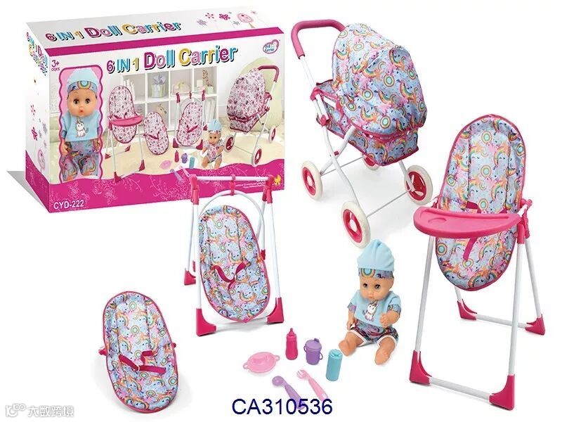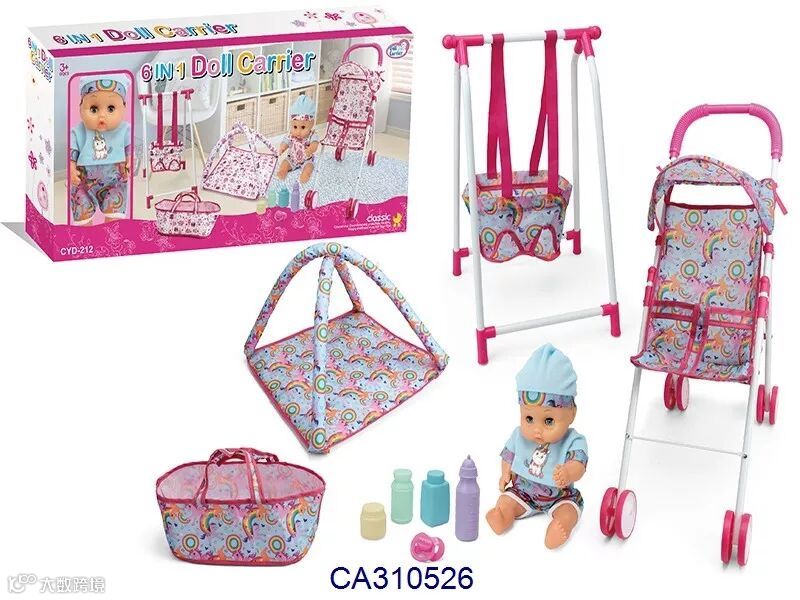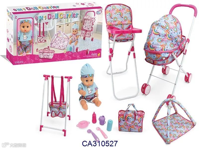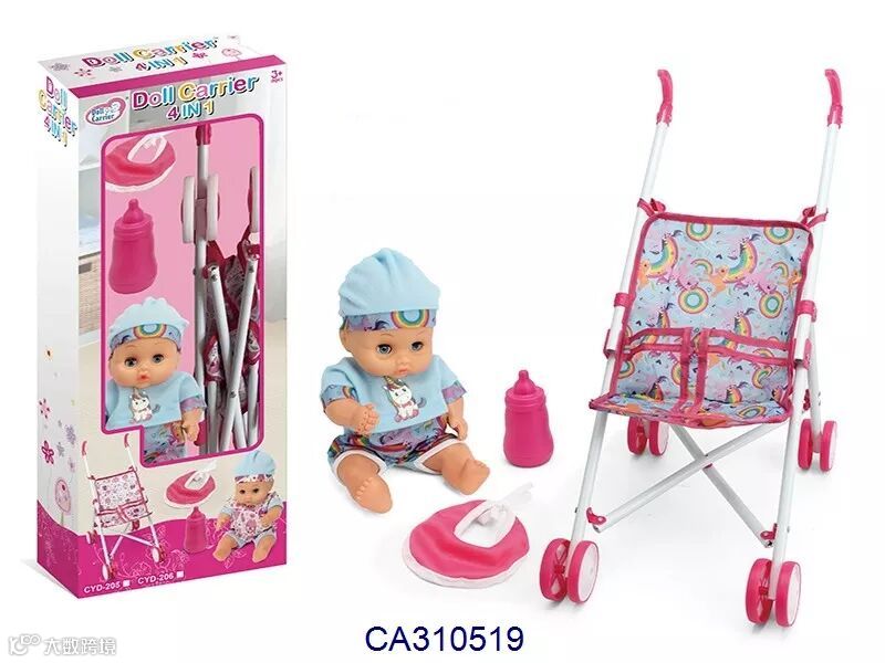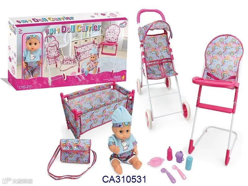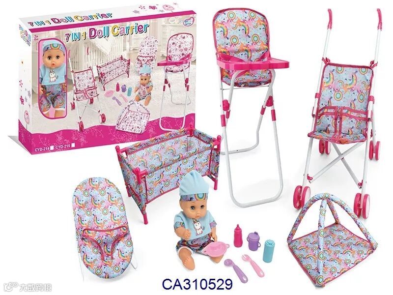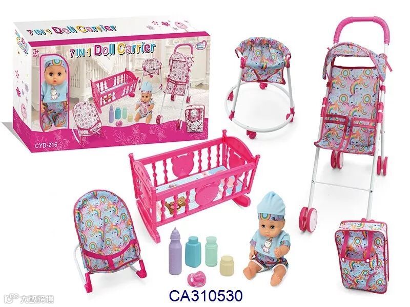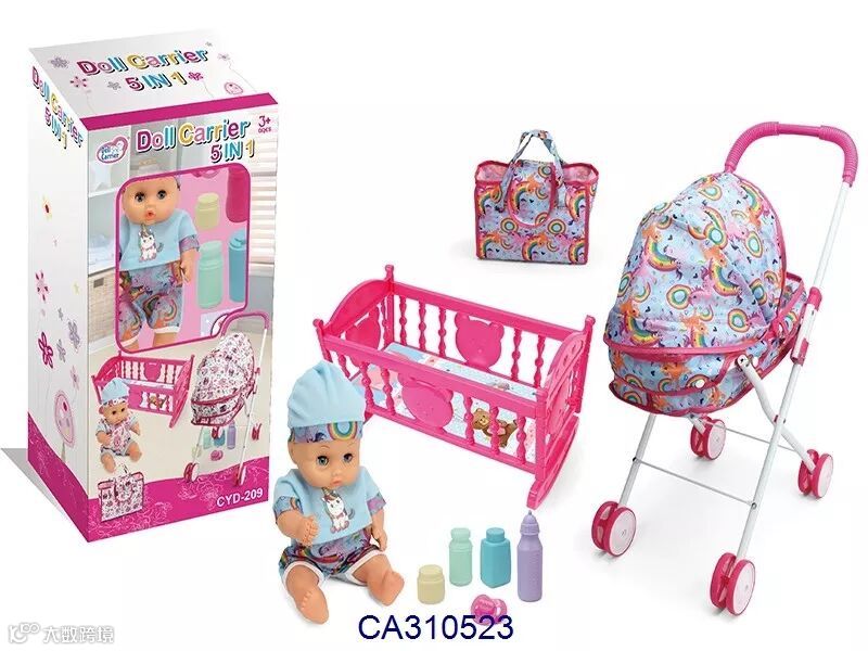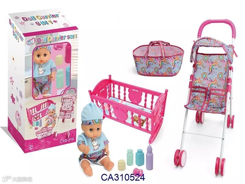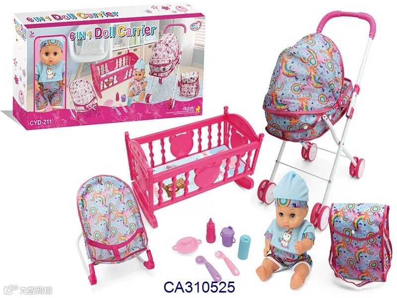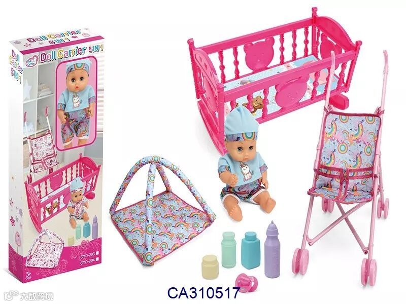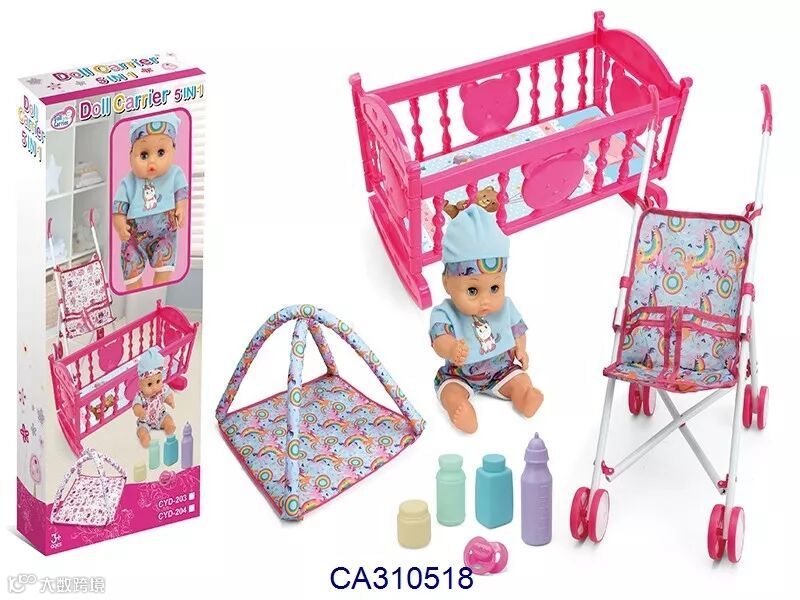 0881M(铁推车)+881-29(爬行毯)+881-38(塑胶床)+12寸吹瓶公仔+