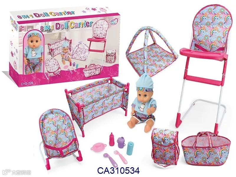 eat chair+cacolet+12" blow mold doll+accessories bag)