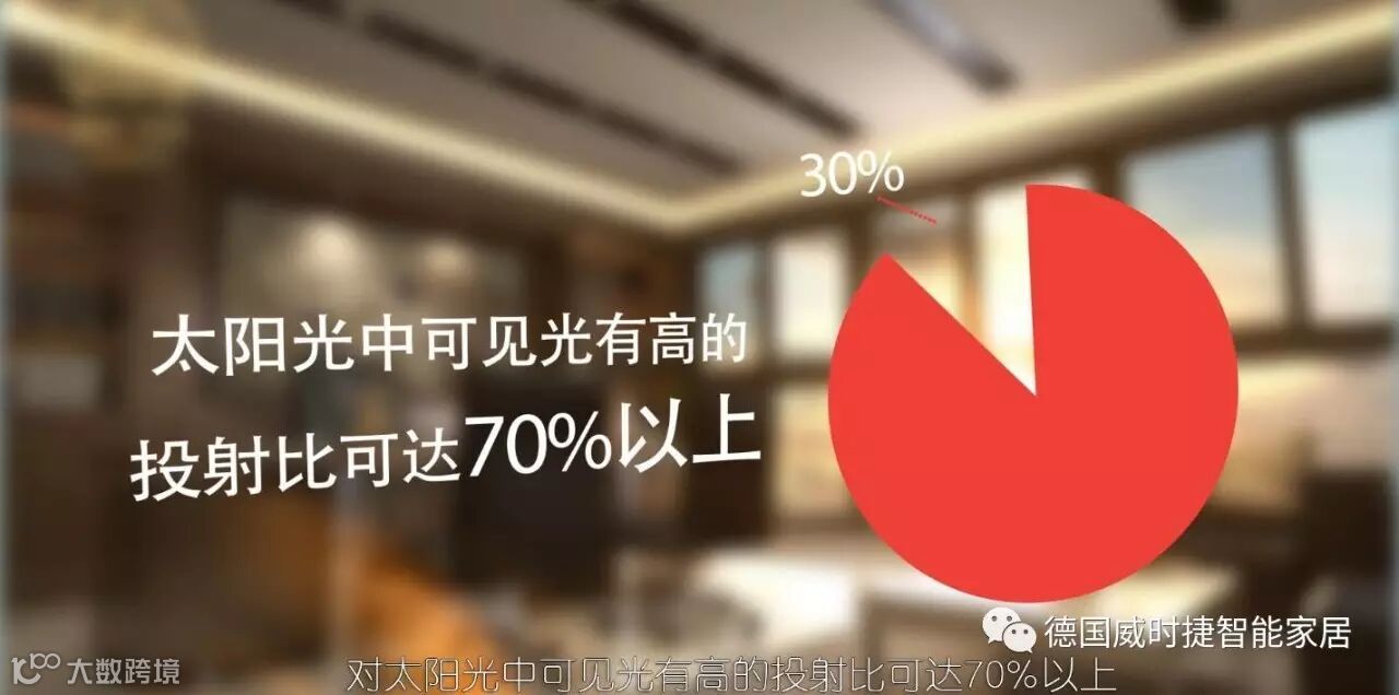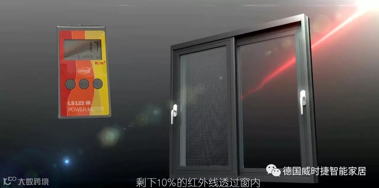阻隔90%的紫外线,剩下的10%紫外线透过室内可以起到杀菌的作用,促进人体对钙的吸收。阻隔90%的红外线,剩下的10%红外线透过窗内,可以促进身体血液循环和新陈代谢作用。