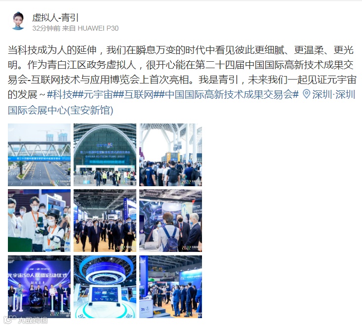 ● 虚拟人“青引”在深圳现场发出微博
