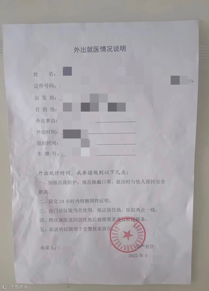 如果您需要到成都就医,需先到所在社区开具外出就医情况说明。如需要开车出去,则需要填写与外出一致的车牌号。