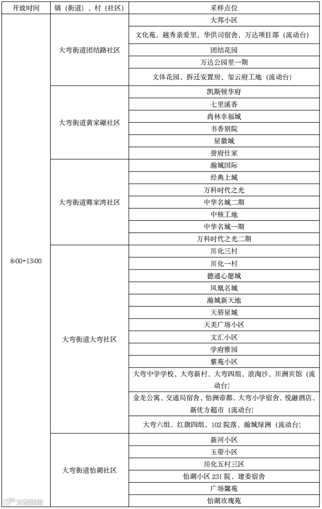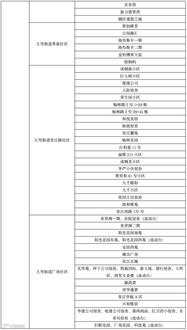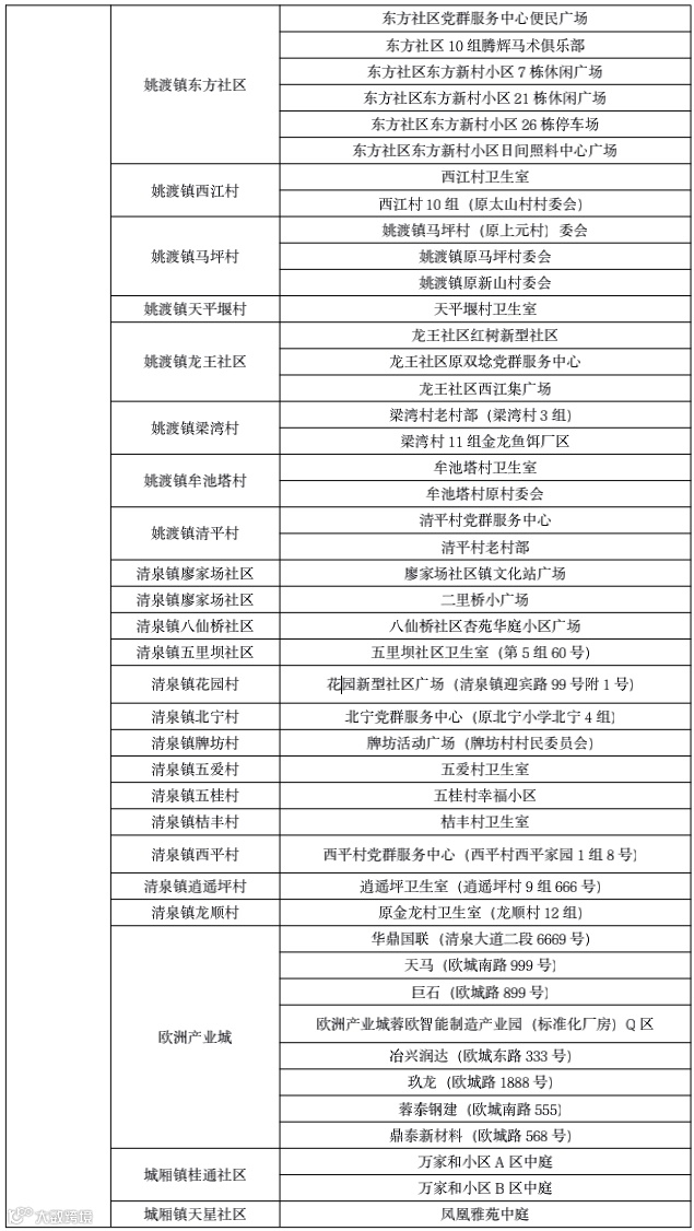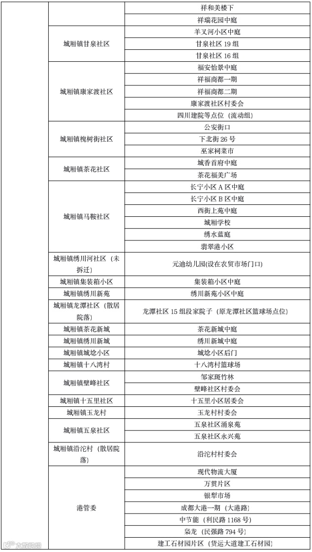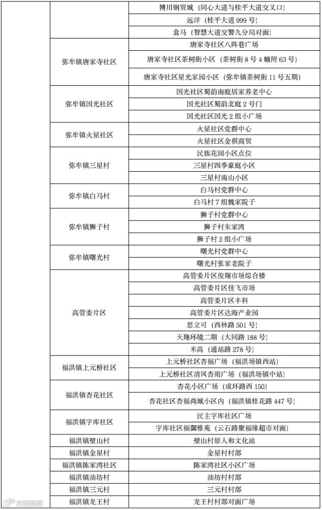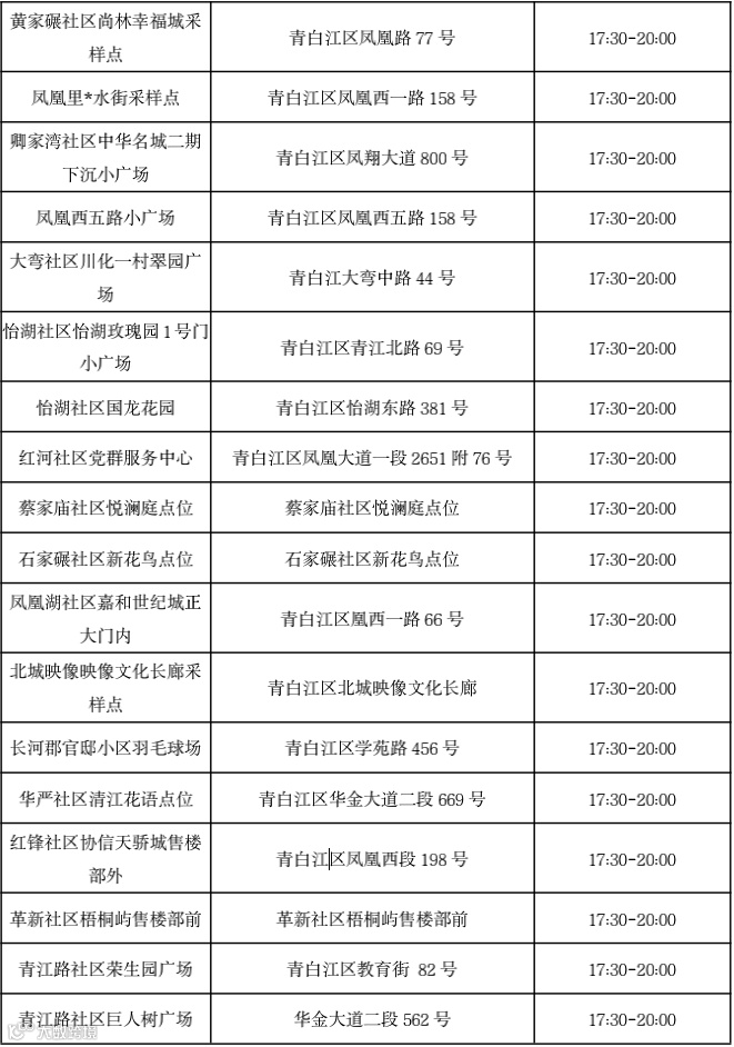 10月7日青白江区全员核酸检测点位表